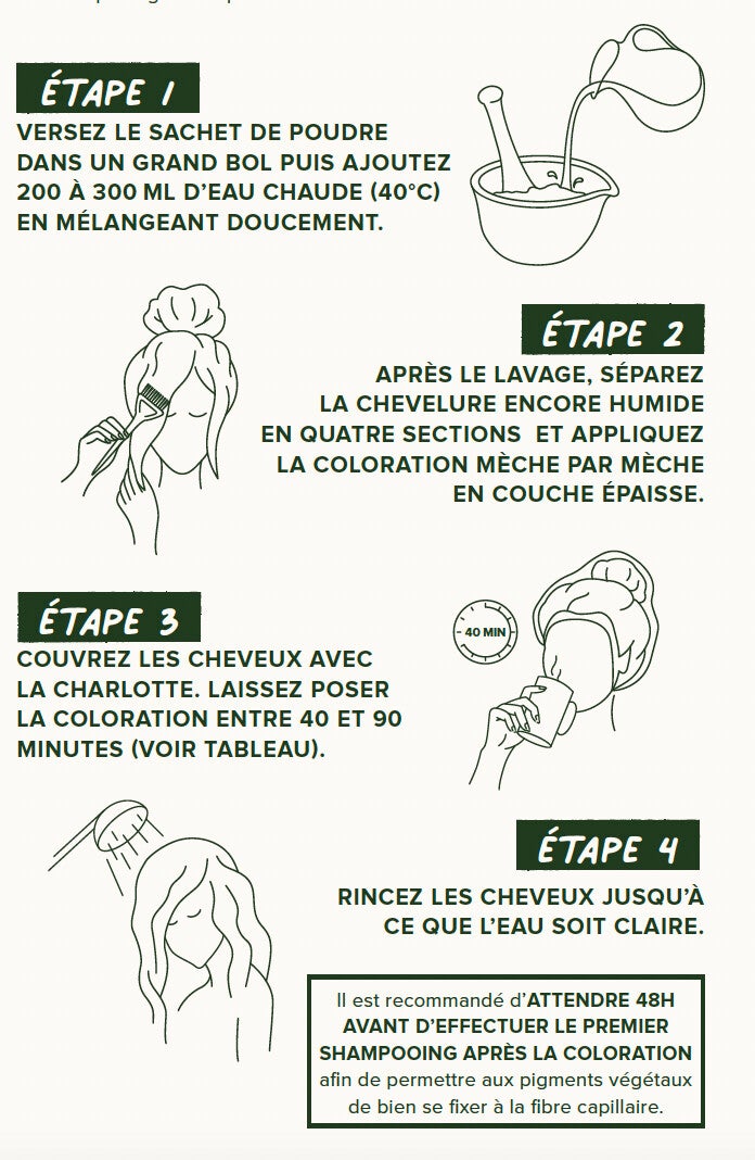 Suivre le mode d'emploi indiqué à l'intérieur de la boîte de coloration Emblica