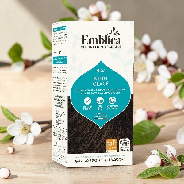 La coloration 2.1 Brun glacé Emblica offre une couleur brune naturelle aux reflets cendrés à vos cheveux.
