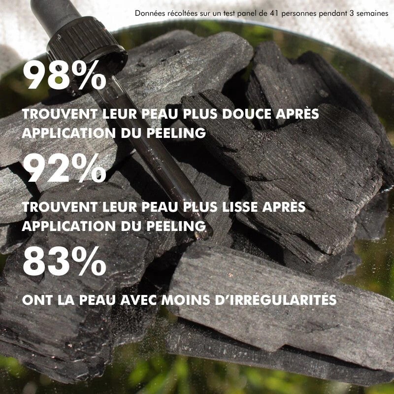Charbon actif : absorbe l’excès de sébum et les impuretés pour réduire la brillance et purifier la peau.