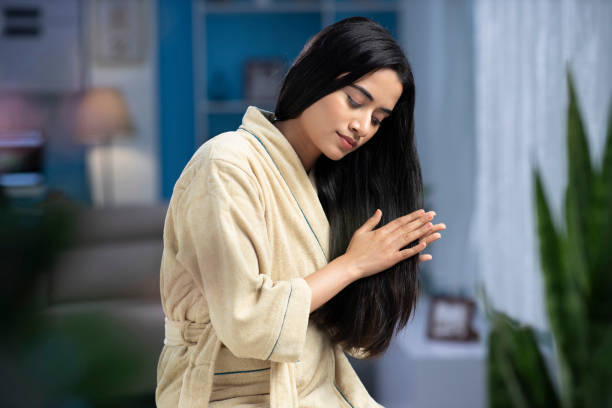 Elle est également efficace pour traiter les cheveux secs et abîmés, en les nourrissant et en les hydratant.