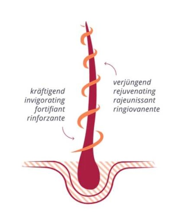 Cet extrait de plantes Ayurvédiques riche en principes actifs renforce la racine et la structure des cheveux.
