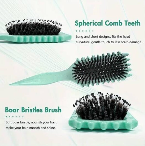Les poils stratégiquement placés définissent, façonnent et démêlent les boucles sans effort.