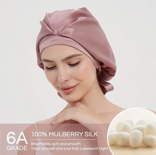 Ce bonnet luxueux & multifonction 100% Soie est conçu pour fournir confort et protection à vos cheveux pendant votre sommeil.