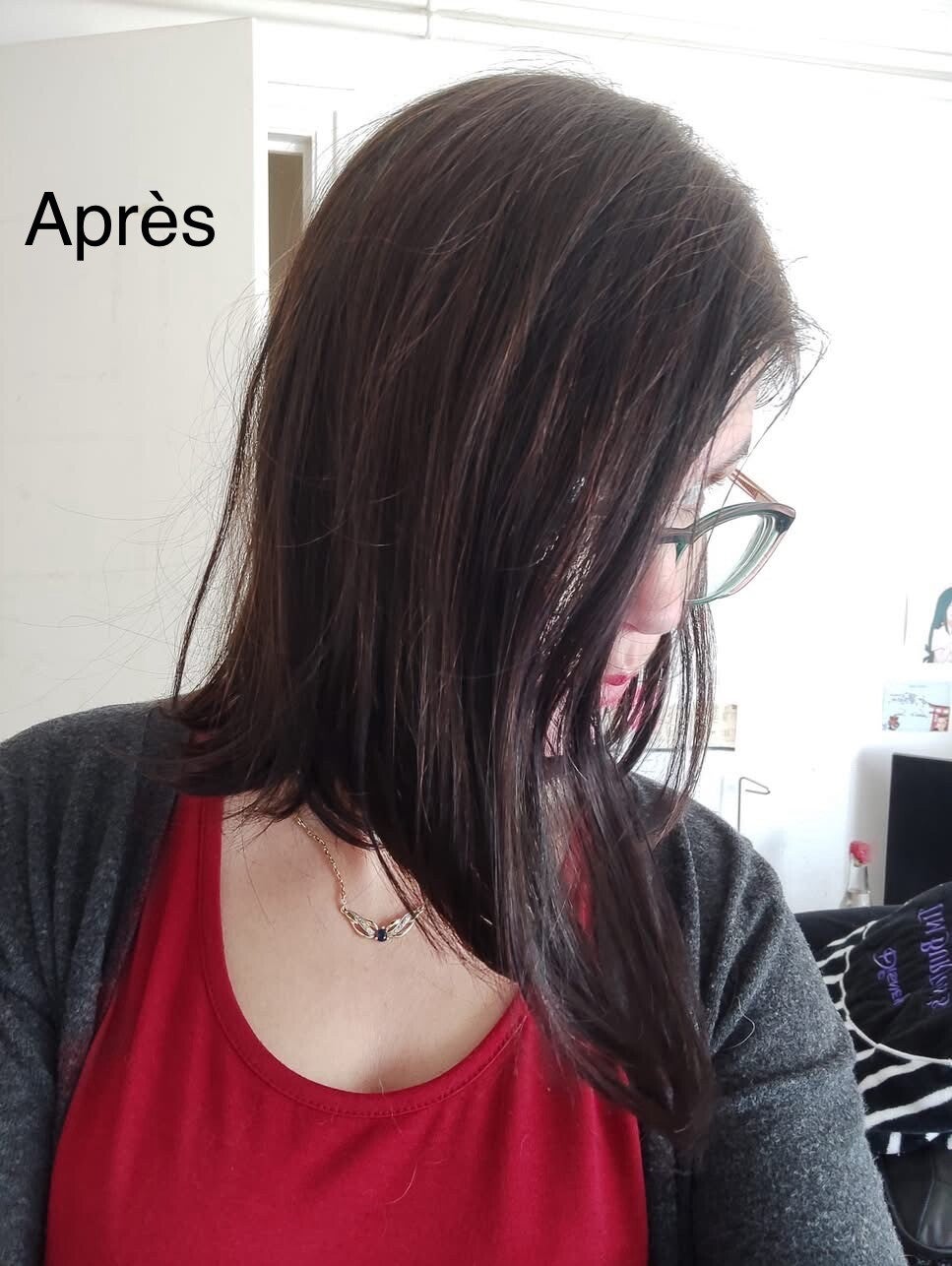 Post rinçage des reflets verts bronze peuvent faire leur apparition.