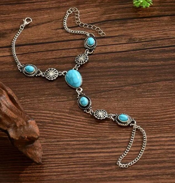 Bracelet Bohème Femme – Turquoise Ovale & Goutte d’Eau Vintage