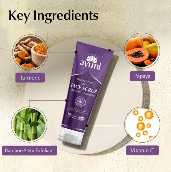 Le gommage visage curcuma Ayumi utilise la poudre de bambou pour exfolier doucement et éliminer les cellules mortes et impuretés, laissant la peau parfaitement nettoyée et rafraîchie.