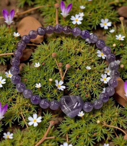 Découvrez notre bracelet cœur en pierres naturelles d’améthyste, fabriqué artisanalement avec soin.
