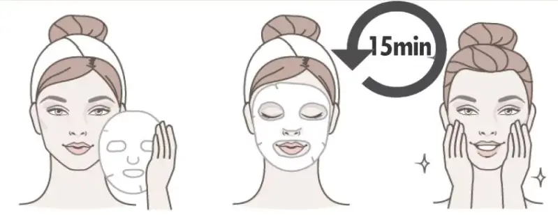 Prêt-à-l’emploi, tu peux l’utiliser partout, même au travail ! ll suffit de déplier le masque et d’enlever le film de protection. Sa forme pré-découpée innovante le rend facile d’application et il s’adapte à tous les visages. Applique-le ensuite sur ton visage sur une peau parfaitement nettoyée. Détends-toi pendant 15 minutes puis retire le masque et masses doucement l’excédent de sérum. Profites de ta peau qui rayonne jeunesse et bonheur.