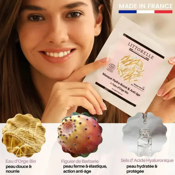 Masque Hydra-Boost & Anti-âge à l’eau d’Orge bio – Certifié Bio