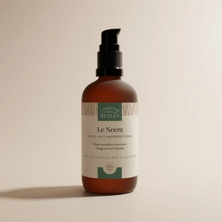 L'huile de Neem est l’indispensable pour les peaux à problèmes, ses propriétés purifiantes et apaisantes permettent de diminuer l’apparence des imperfections.