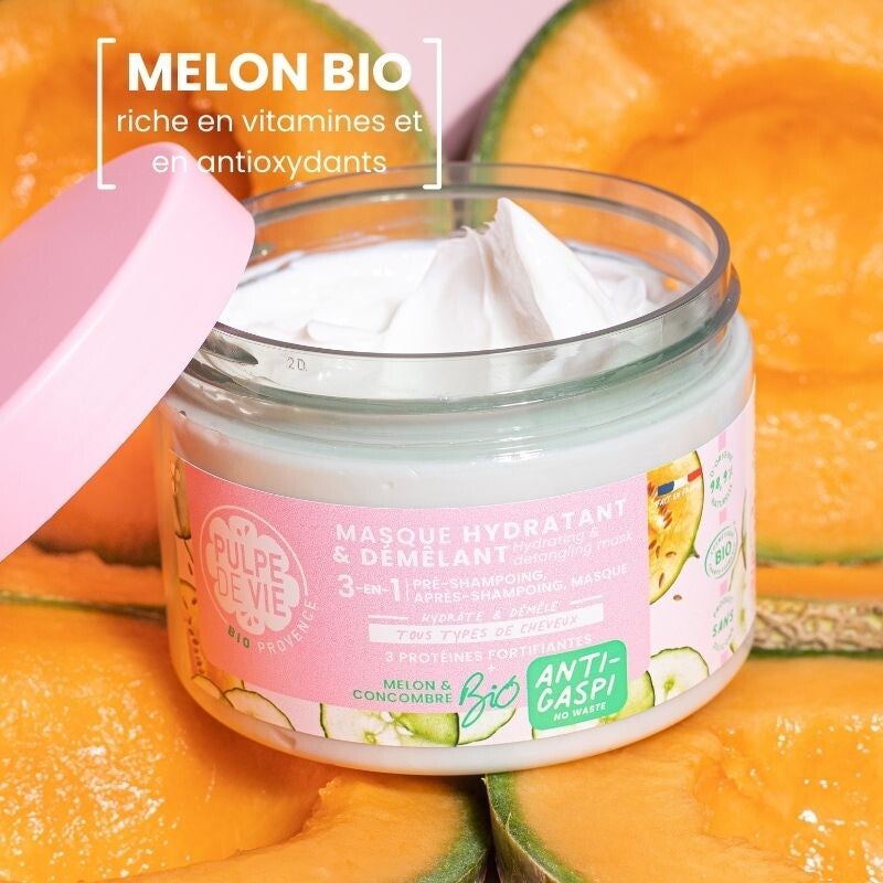 Masque Cheveux 3-en-1 Hydratant & Démêlant au Melon BIO - Pulpe de Vie