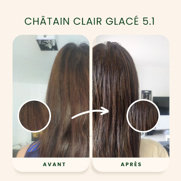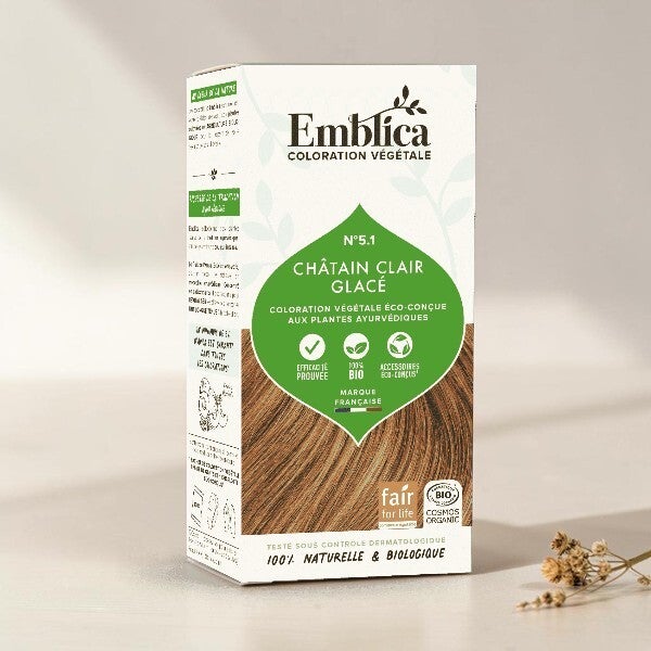 La coloration 5.1 Châtain clair glacé Emblica offre une couleur naturelle aux reflets cendrés à vos cheveux.