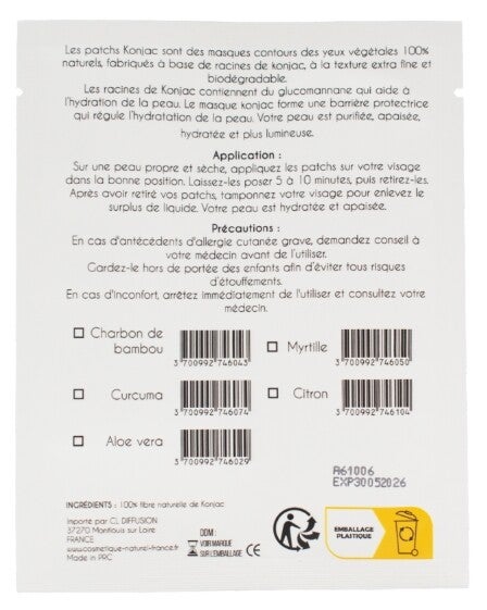 Des patchs pour le contour des yeux au konjac 100% naturels à l'extrait d'aloé vera.