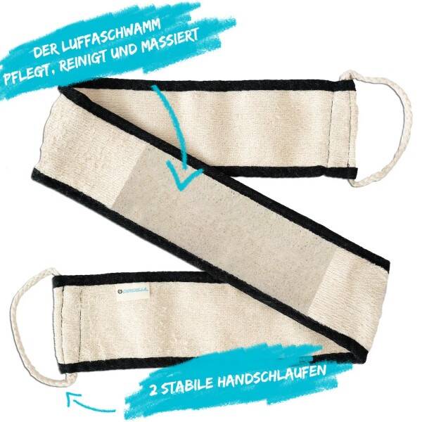💙 NETTOYAGE & MASSAGE : La ceinture de massage pour la douche avec éponge en luffa soigne, nettoie et masse doucement et efficacement. La circulation sanguine est favorisée et les impuretés de la peau, les zones sèches et la cellulite peuvent être améliorées - convient à tous les types de peau.